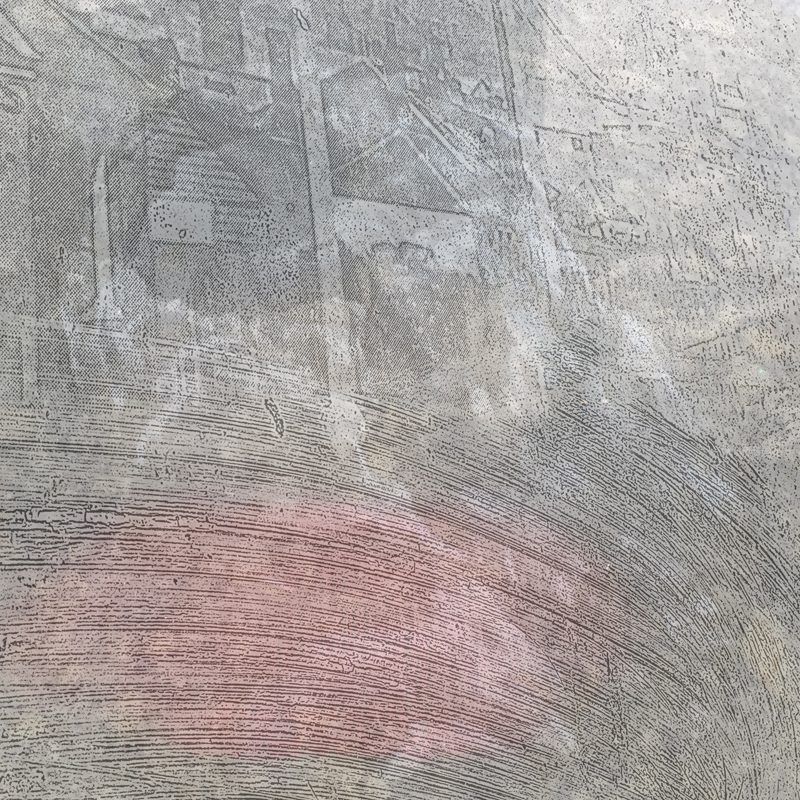 The original collagraphs were abstract responses to the surfaces of the city, the buildings, walls, streets and textures. Façade relates both to the front of a building and a deceptive outward appearance.